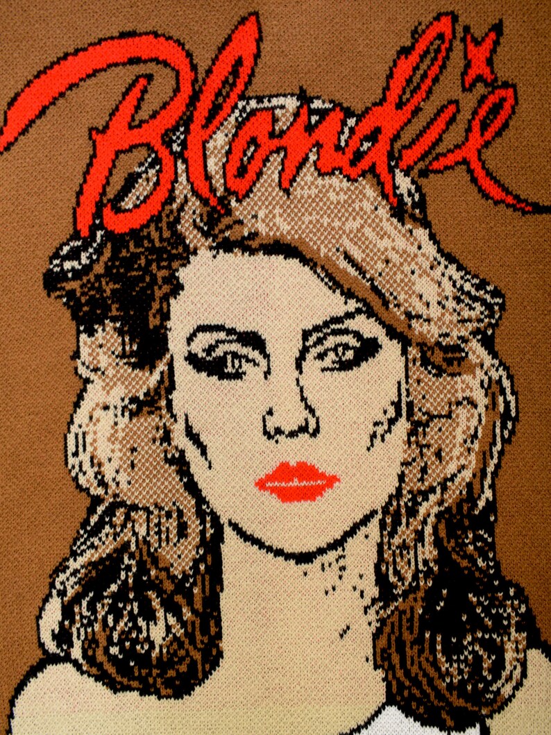 Blondie Knit Sweater – Vintage Rock Unisex Sweater with Leopard Print Sleeves, Made in USA