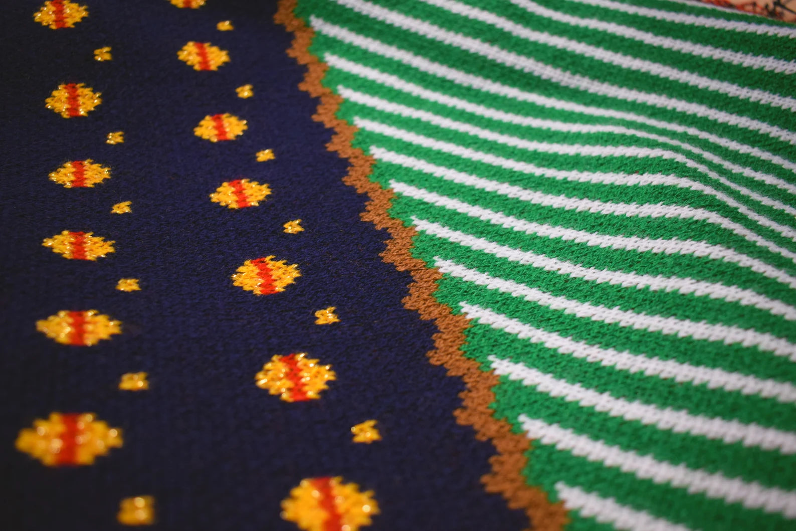 It won’t shrink, and the designs are created by combining four different yarn colors, ensuring it will not bleed or fade like some printed apparel.