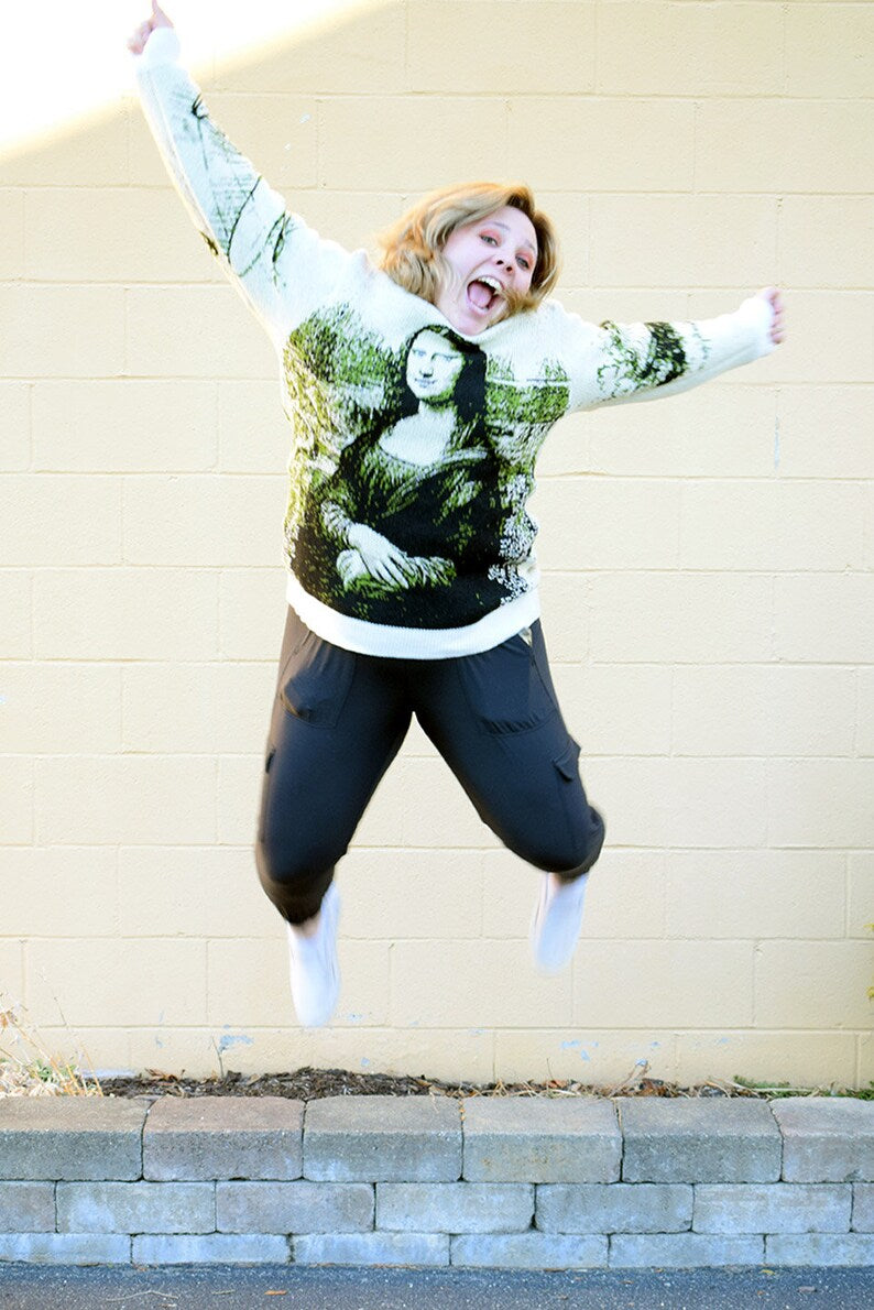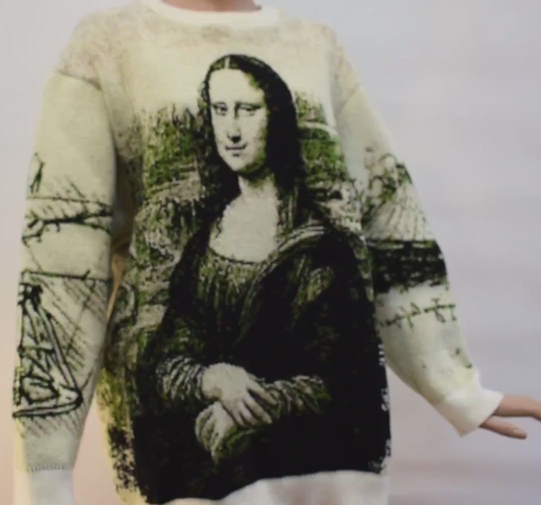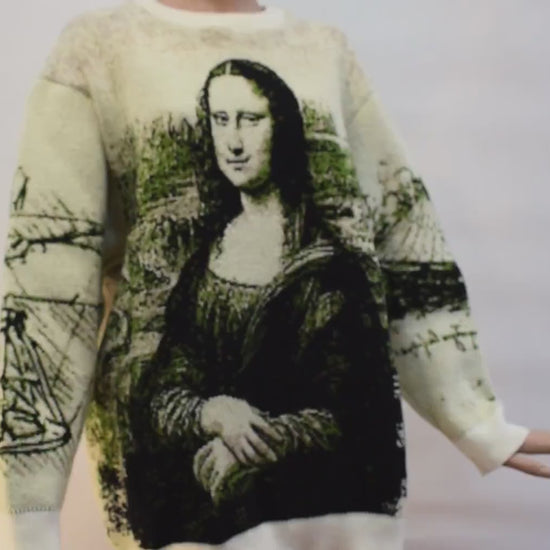 Wear a masterpiece. Our Leonardo da Vinci Mona Lisa Knit Sweater celebrates one of the most iconic works of art in history — brought to life through intricate knit craftsmanship. Featuring the timeless Mona Lisa on the front and Da Vinci’s Vitruvian Man and sketches on the sleeves, this sweater is a true conversation piece for art lovers everywhere.