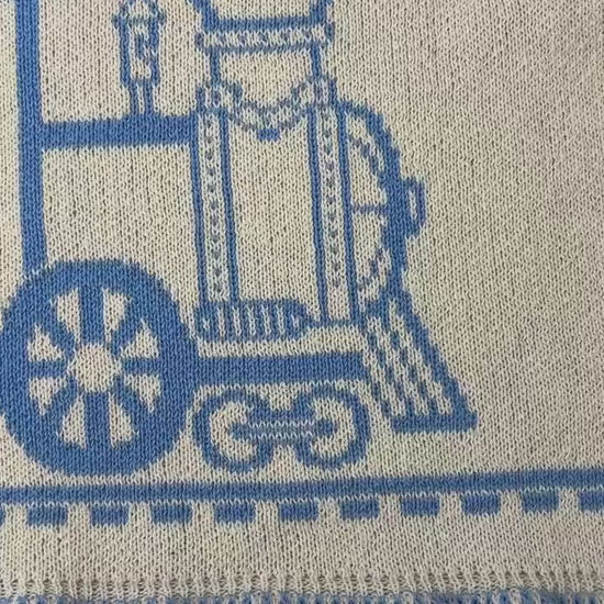 Each blanket is woven—not printed—with colored yarns to create its detailed design, ensuring it’s safe for baby to touch, pull, and explore different textures. Available in Baby Blue or Navy, this blanket makes a timeless keepsake and a thoughtful baby shower or newborn gift.