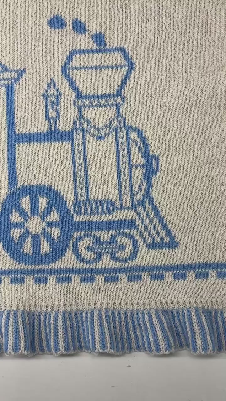 Personalized Toy Train Baby Blanket & Play Mat – Knit Baby Blanket (Navy or Baby Blue)